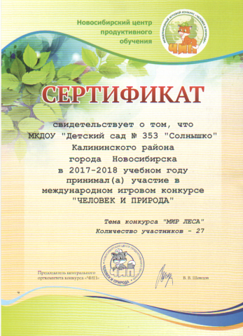 МКДОУ д/с № 353 - в 2017-2018 учебном году участник международного игрового конкурса "Человек и Природа" "Мир леса"